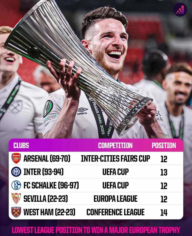 联赛排名较低但最终赢得重要冠军:国米曾以联赛第12夺联盟杯冠军
